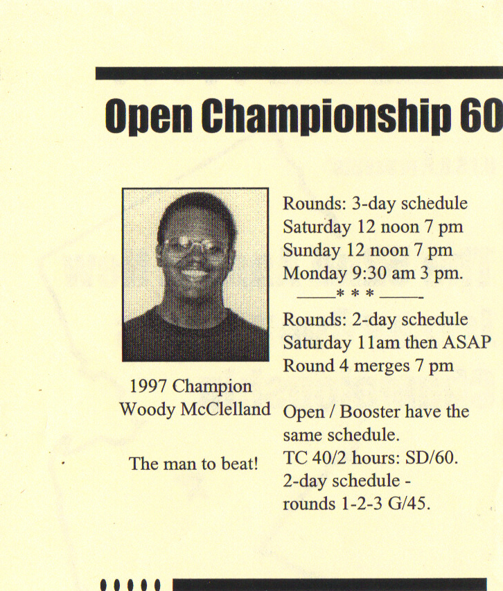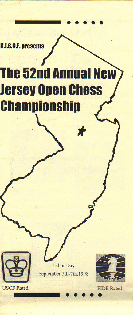 In 1997, at the age of 19, I became the first teenager in 20 years to become the New Jersey State Chess Champion. These are from the official flier prior to the start of the 1998 championship one year later.
