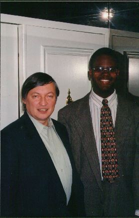 Here I am with former World Chess Champion Anatoly Karpov; at the time he was reigning FIDE World Champion and I was the reigning New Jersey Chess Champion. (February 15, 1998 -- Parsippany, New Jersey)