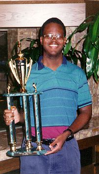 Here I am holding the championship trophy at the end of the 1998 New Jersey Open -- successfully defending the title I won in 1997, and at the age of 20 becoming the youngest person with at least two New Jersey State Championships -- a record that still stands. (September 7, 1998 -- Somerset, New Jersey)